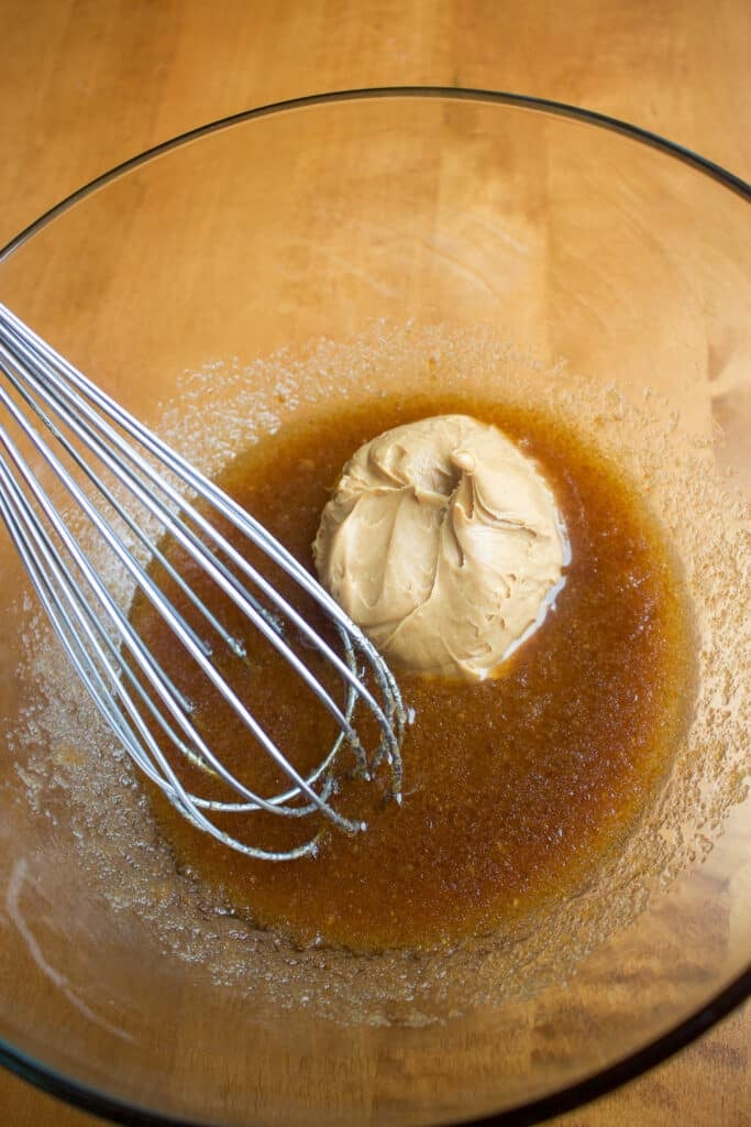 - Add in the peanut butter and whisk until smooth.3/4 cups creamy peanut butter*
