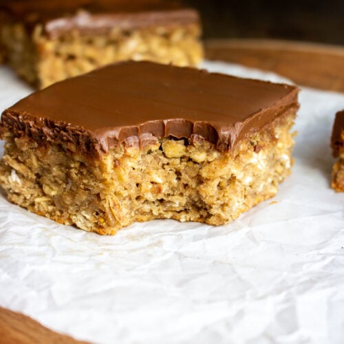 Once baked, slice into squares and keep in a container at room temperature for up to 3 days.