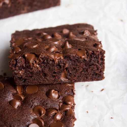 You can also freeze these chocolate banana brownies. To freeze, cool the bars completely. Unsliced, wrap the entire square in plastic wrap or place into a ziplock bag. Freeze for up to 1 month.