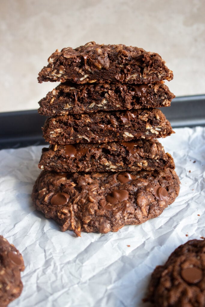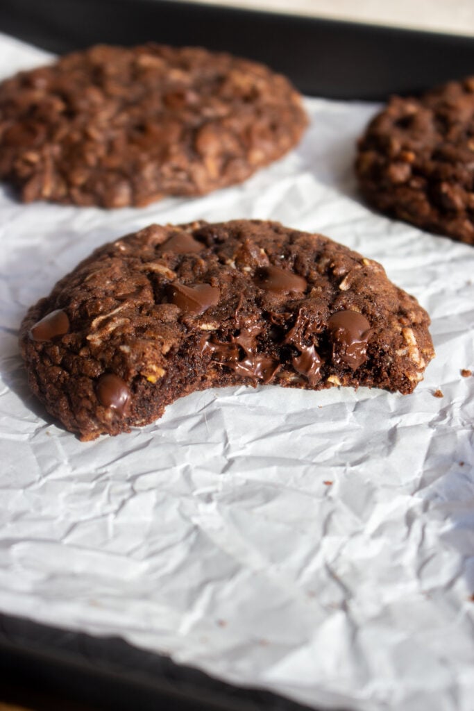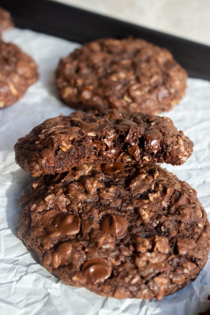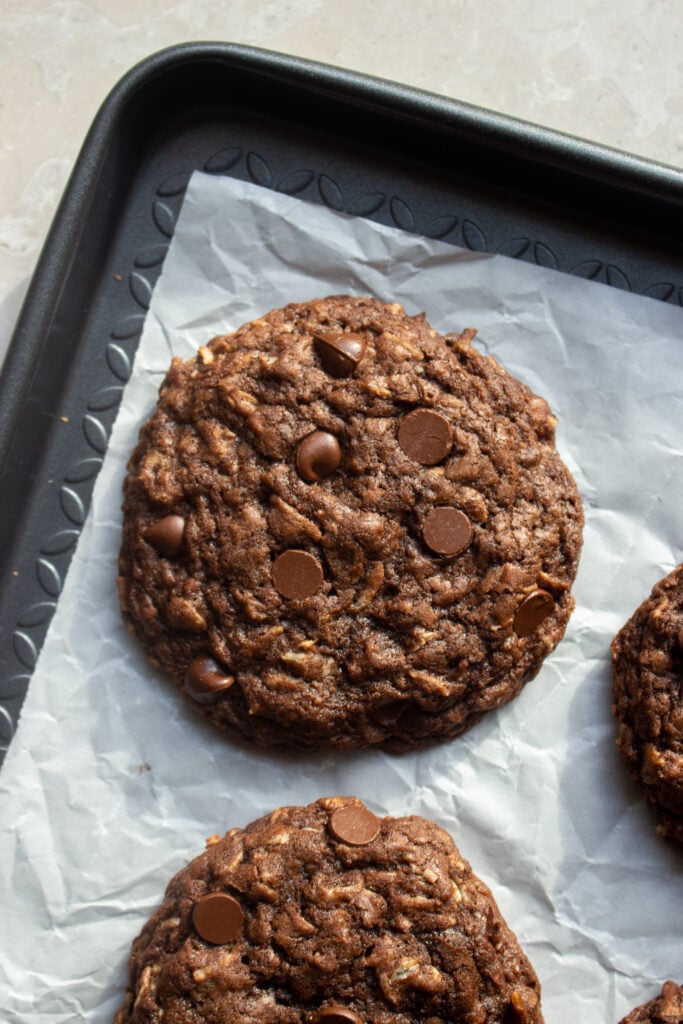 Delicious Chocolate Oatmeal Coconut Cookies are rich in chocolate and have super soft oatmeal middles. There is tons of chocolate and coconut in every bite! The best part? No chill time required!