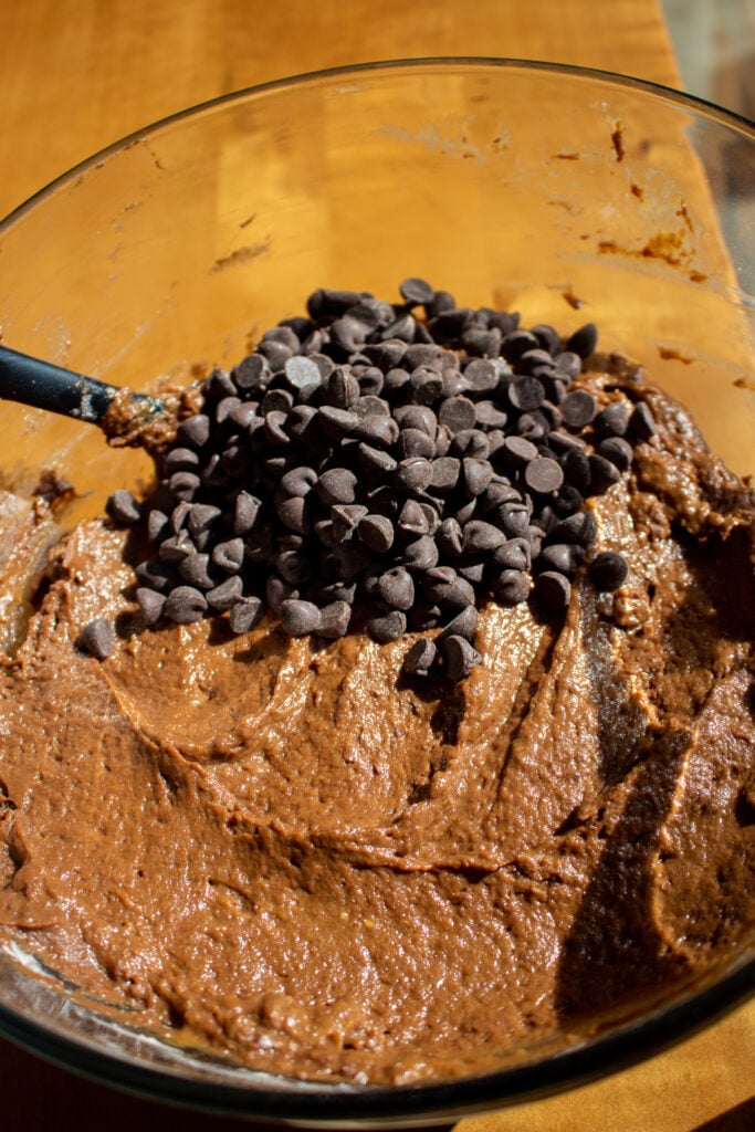 - Add in the chocolate chips and stir in a few times. Do not over-mix!3/4 cups semi-sweet chocolate chips