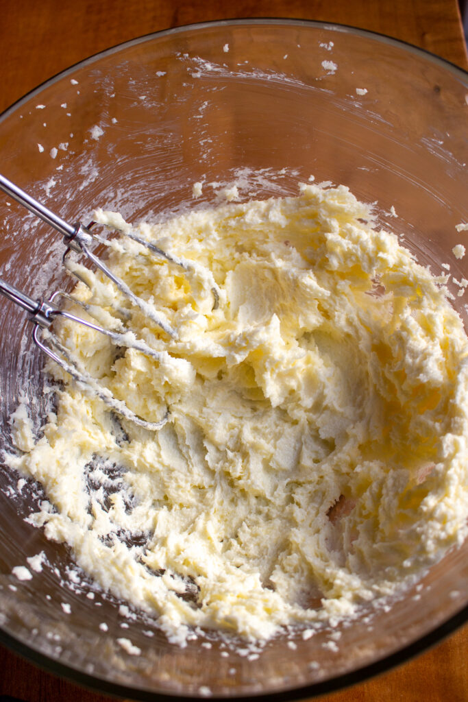 - Cream together the butter and cream cheese until well combined.1/2 cup unsalted butter, 2 tbsp cream cheese*