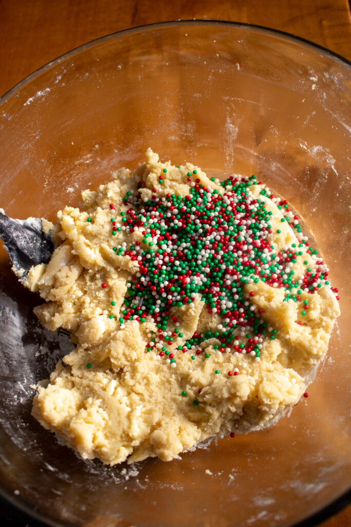 - Mix in the sprinkles.1/2 cup Christmas sprinkles*