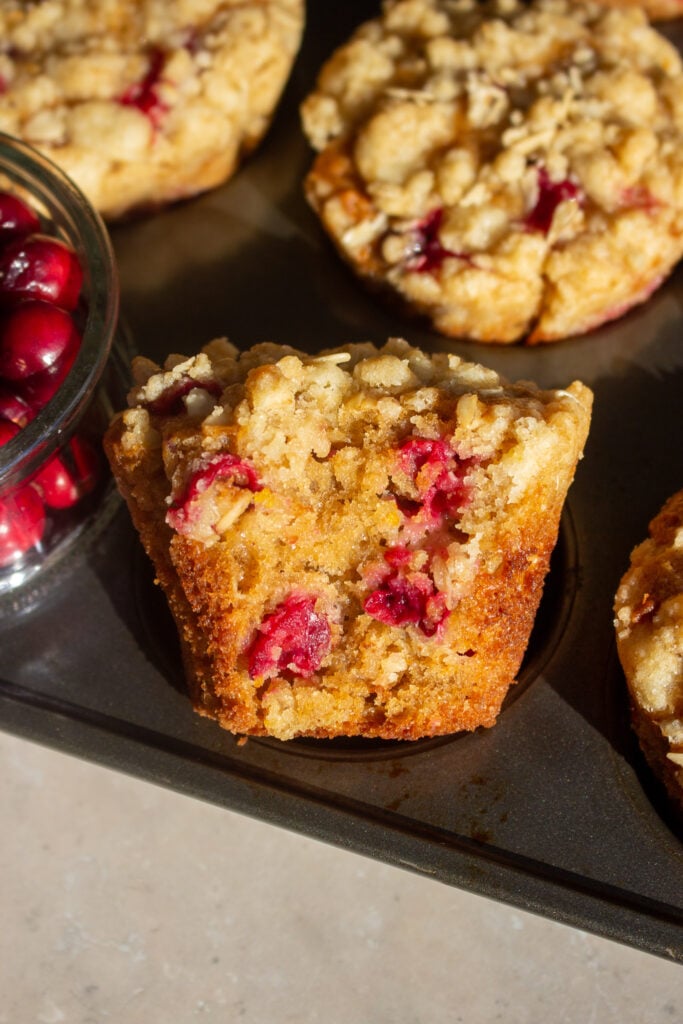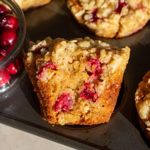 These fresh Cranberry Oatmeal Muffins are the best way to use up leftover cranberries this Christmas season! Just mix them into the muffin batter, bake, and enjoy!