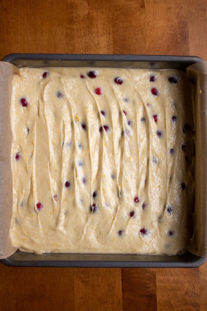 Step 7: Mix in cranberries. Toss the cranberries in 1 tsp of flour before adding them into the batter and mix with a spatula just until evenly distributed.