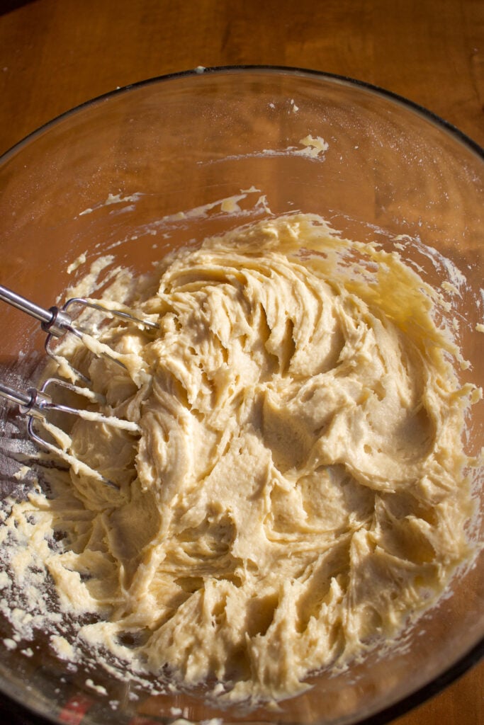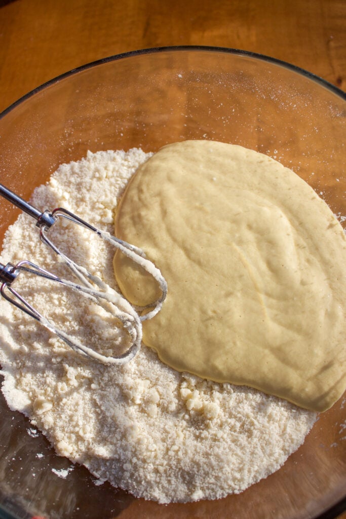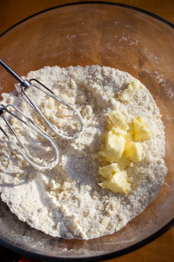 - Add in about 1/3 of the butter. On low speed, mix until just combined. Then add in the next 1/3 of butter, and mix well, scraping the bowl as needed. Then the last bit of butter, and mix until a crumbly texture forms (see image above for reference). The key to this cake is mixing as little as possible, so only mix each addition in until just combined!2/3 cups unsalted butter