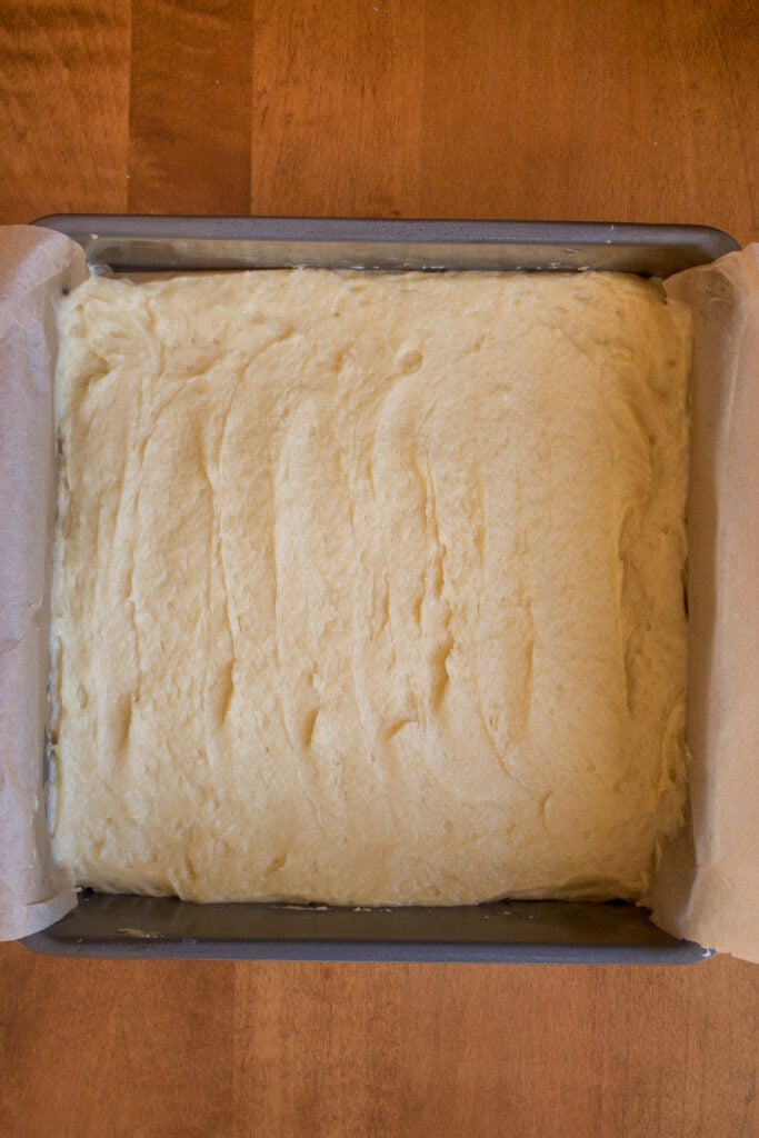 - Transfer into the prepared pan and spread evenly. Sprinkle streusel on top.