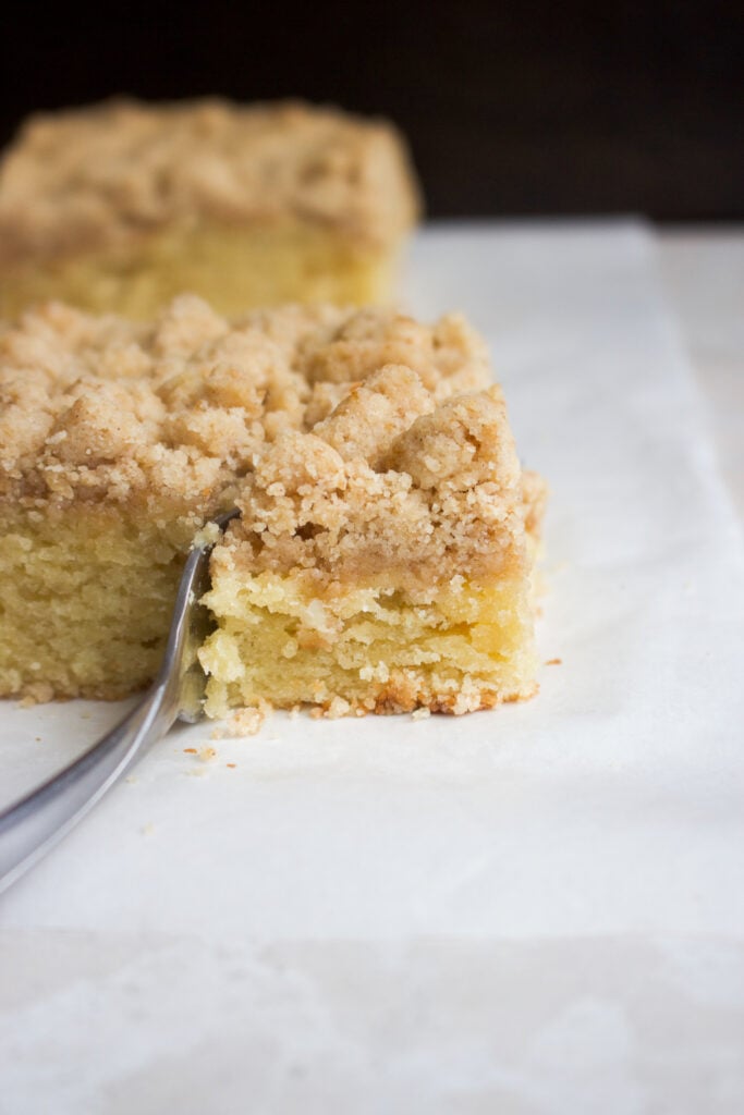 The cinnamon sugar crumb is so buttery. It melts into the cake and crisps up while baking. It's truly incredible.