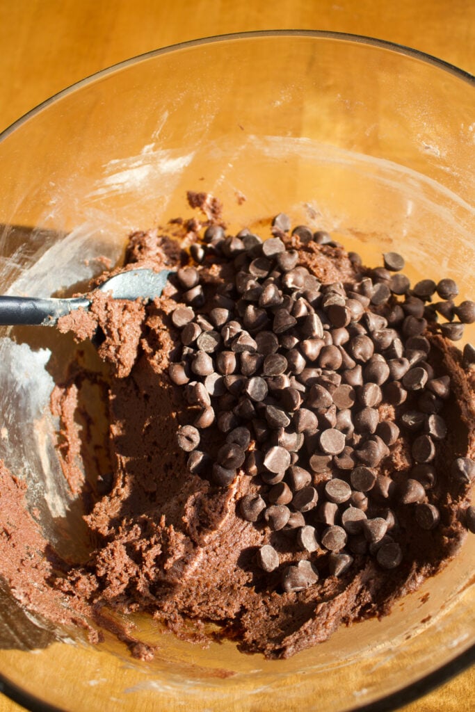 Step 5: Mix in chocolate chips. Add the chocolate chips in and mix a few times.