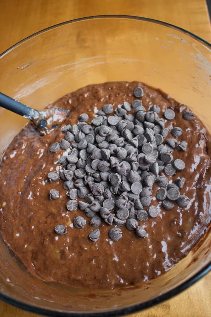 - Mix in the chocolate chips gently a few times - do not over-mix!3/4 cups semi-sweet chocolate chips