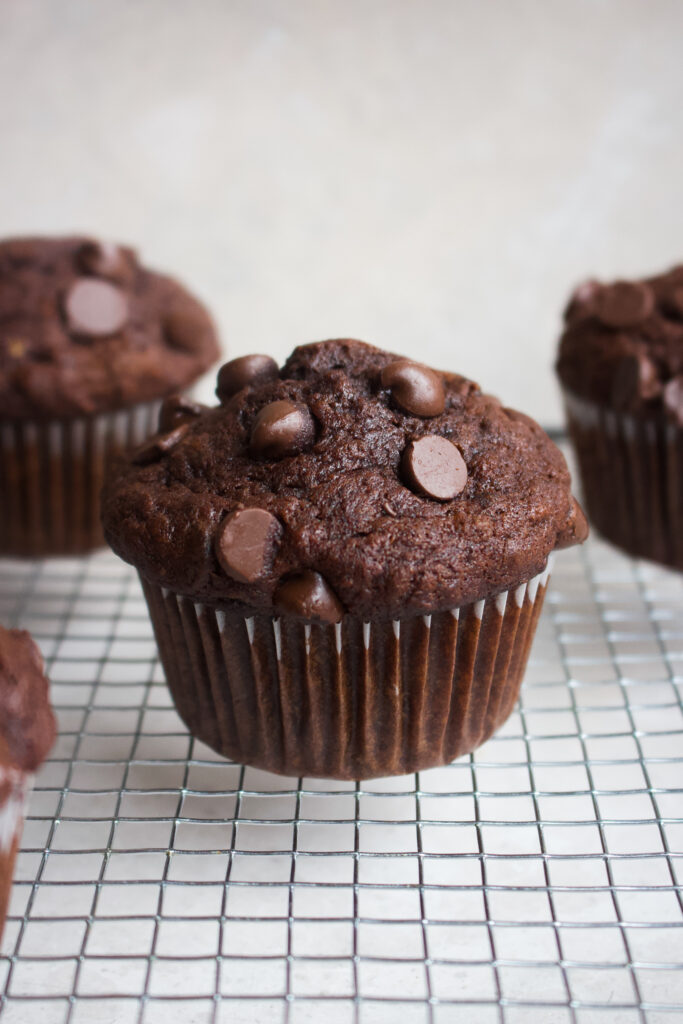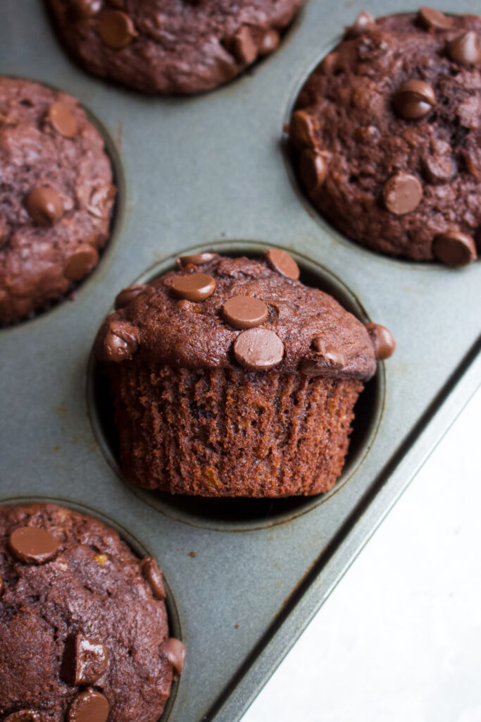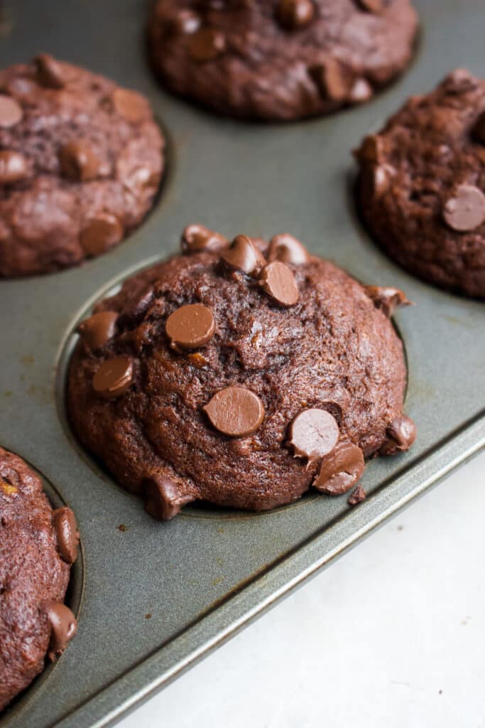 This easy chocolate banana muffin recipe is perfect for using overripe bananas. There's no sour cream or yogurt in these muffins, making them even easier for you to whip up! Enjoy them as a grab-and-go breakfast, snack time, or a sweet dessert!