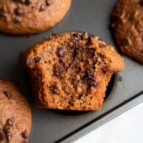 These Easy Gingerbread Chocolate Chip Muffins are so easy to bake! They're fluffy muffins with gingerbread spice in every bite. Mini chocolate chips are studded throughout, adding the perfect pockets of sweetness and pairing so well with the gingerbread!