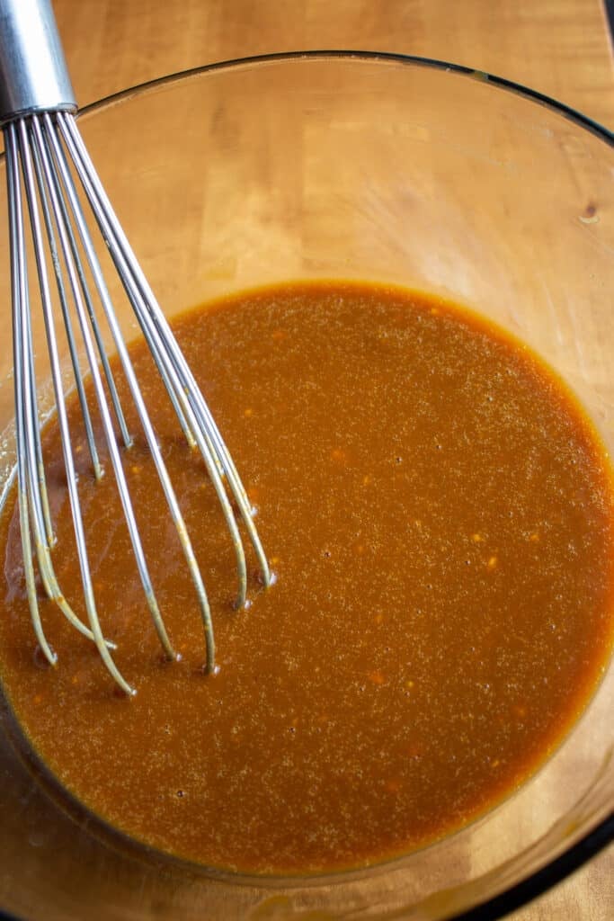 Step 2 - Whisk wet ingredients. In a large bowl, add the brown sugar, white sugar, pumpkin, eggs, oil, vanilla, molasses, orange zest, and sour cream. Whisk well to combine.