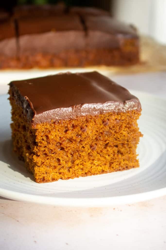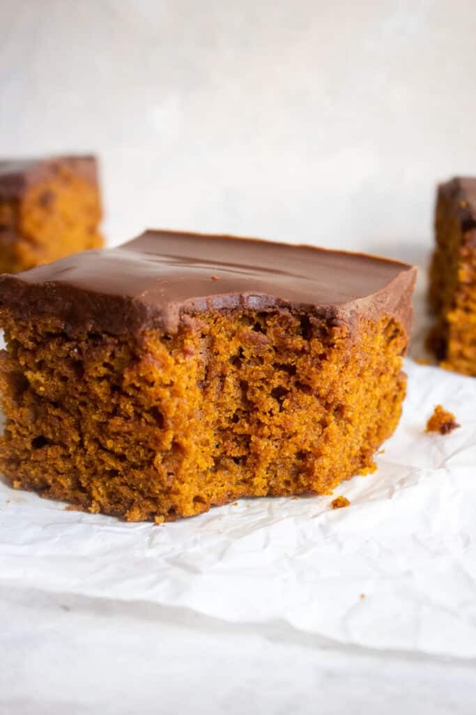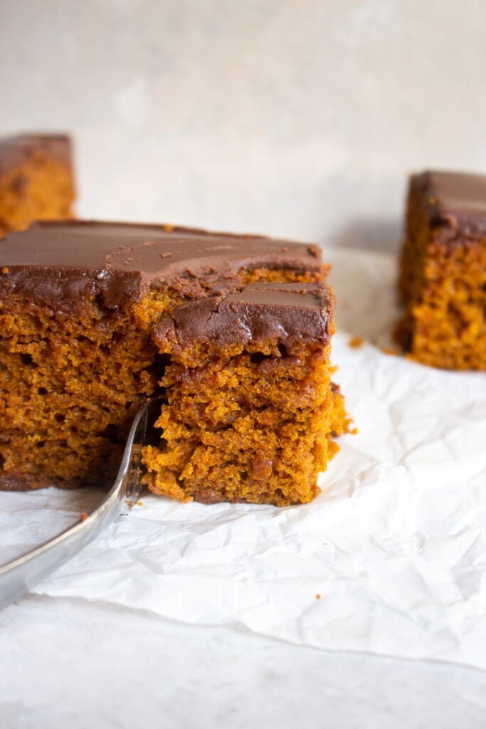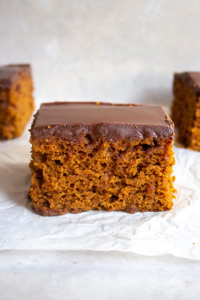 It's perfectly moist thanks to the pumpkin, which helps keep it soft for days. Every bite is full of cozy, warm gingerbread spices, and rich, silky chocolate.