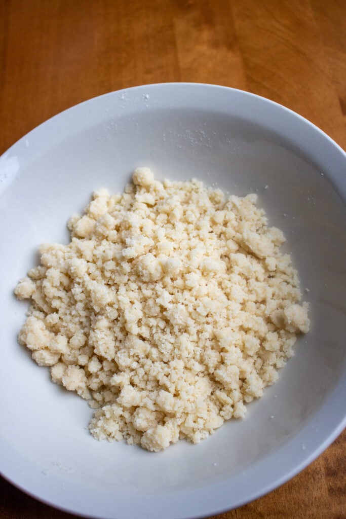 Step 1 - Make the streusel. In a bowl, add the butter, flour, and sugar. With your fingers, combine to form a streusel. Place in the fridge to chill.