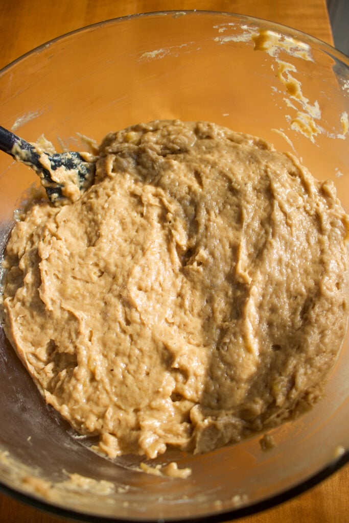 Step 4 - Combine. Add the dry and wet ingredients together and combine gently with a spatula just until a soft muffin batter forms. Do not over-mix.