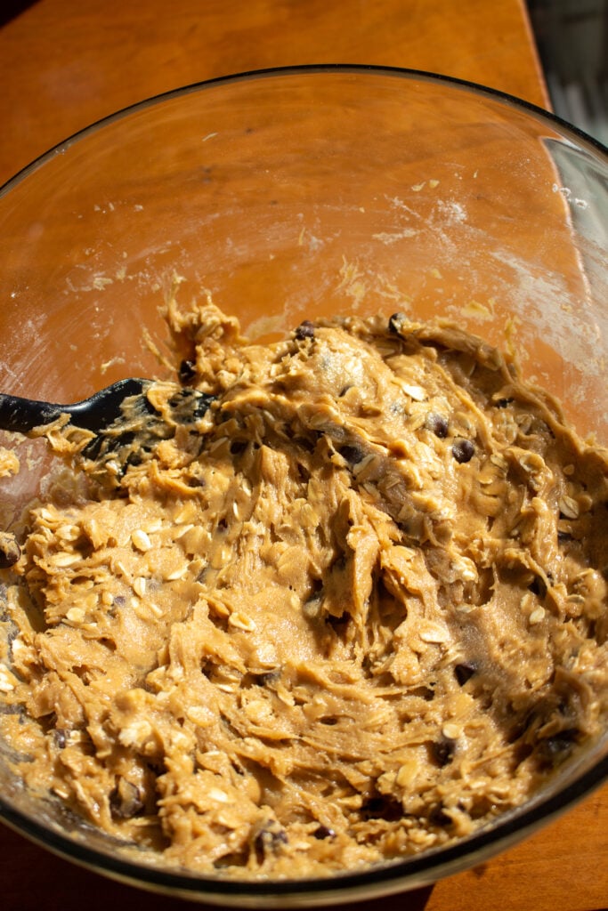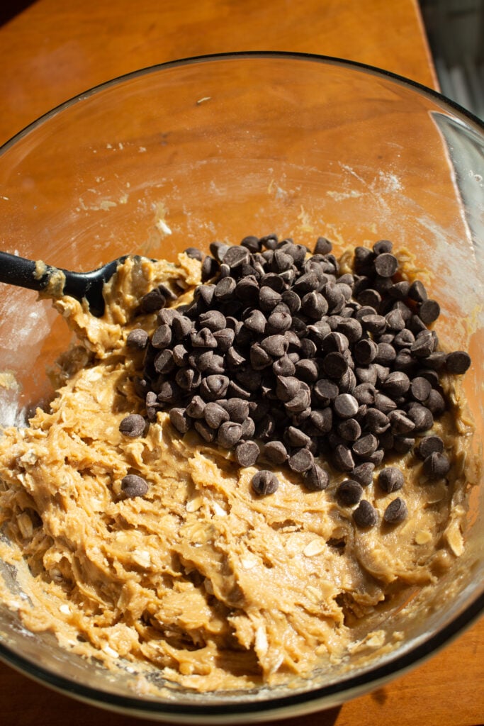 - Mix in the chocolate chips a few times until evenly combined - once again, do not over-mix!