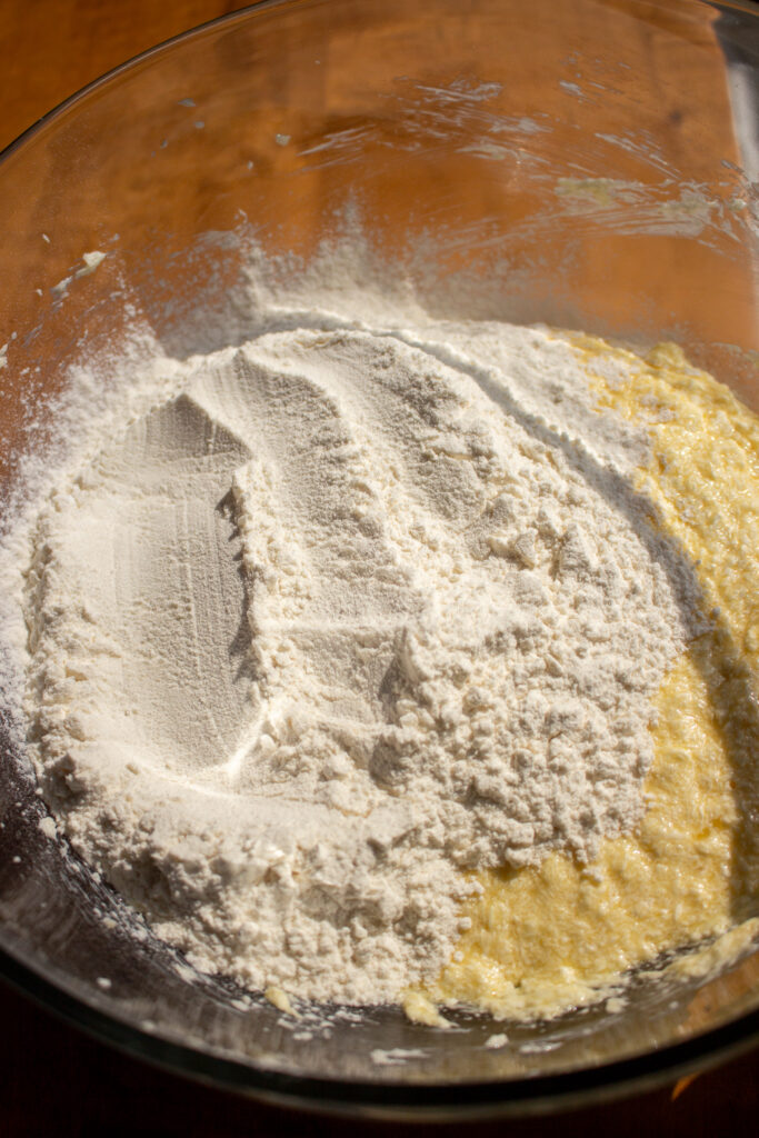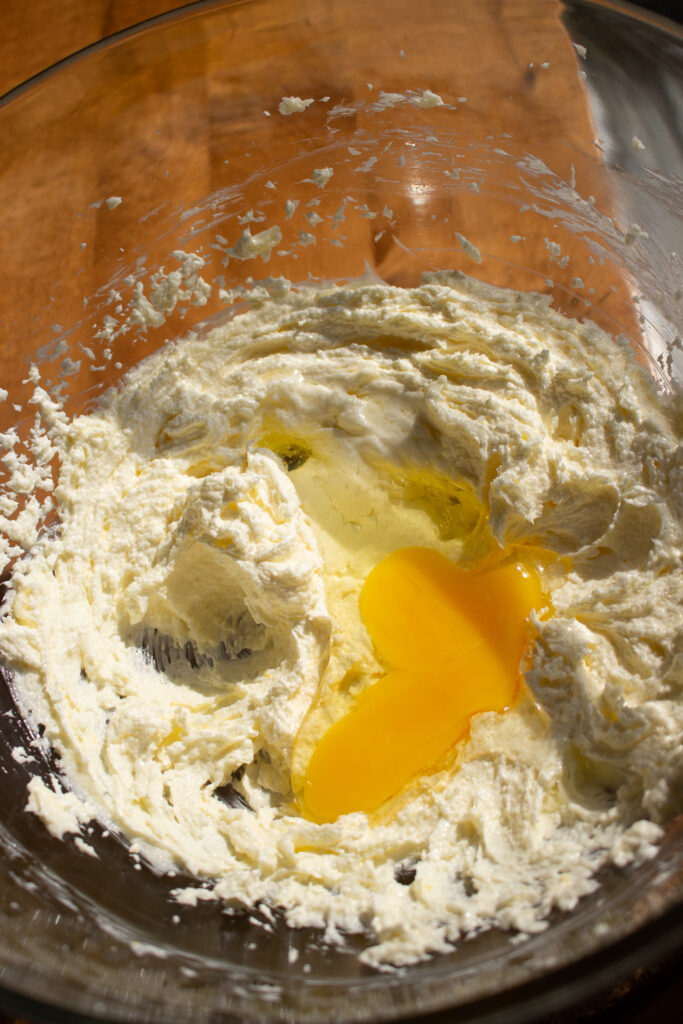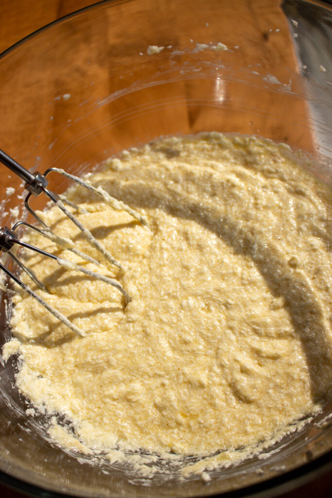 Step 4 - Add eggs and vanilla. Add the eggs in, one at a time, beating for about a minute in between each addition. Scrap the bowl as needed. Then add in the lemon juice and mix in.