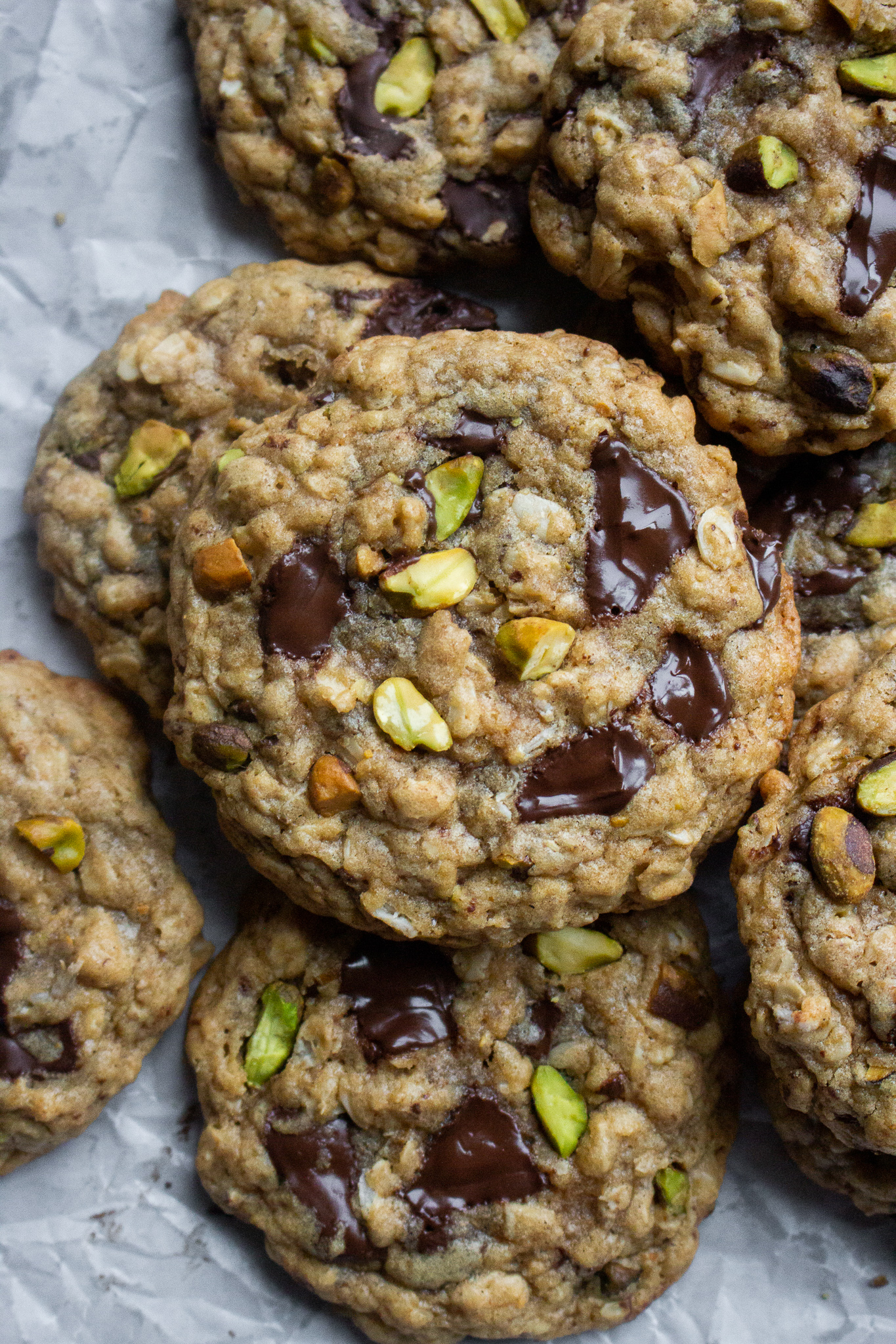 Pistachio Chocolate Chunk Oatmeal Cookies